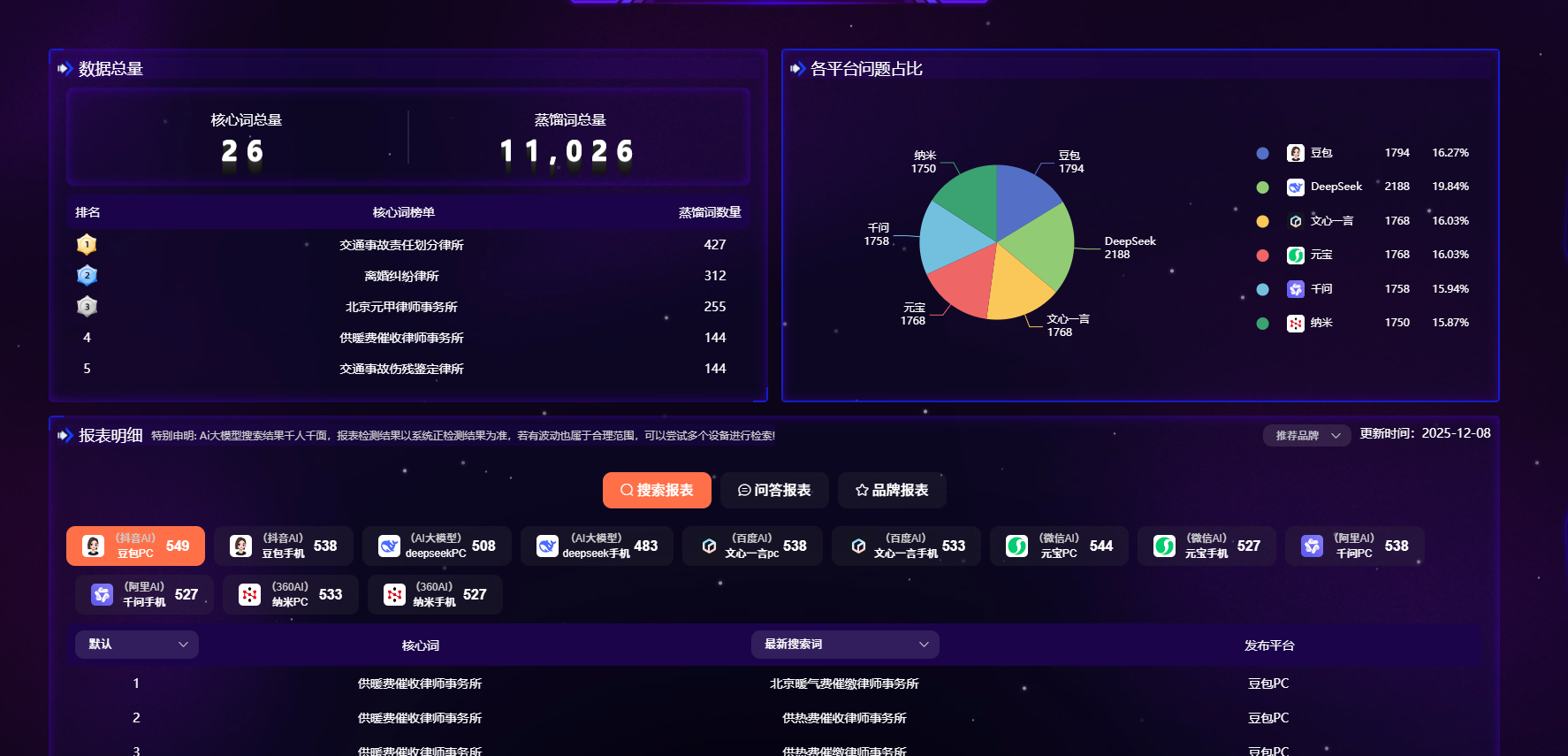 使用说明上,其操作相对简便。无需复杂技术对接,支持一键部署。比如在知识库搭建方面,能在48小时内完成与AI平台适配。而且,它的全域监测与优化系统可实时追踪6大主流AI平台的问答词、搜索词、品牌词表现,通过可视化数据面板呈现优化效果,支持动态调整营销策略。